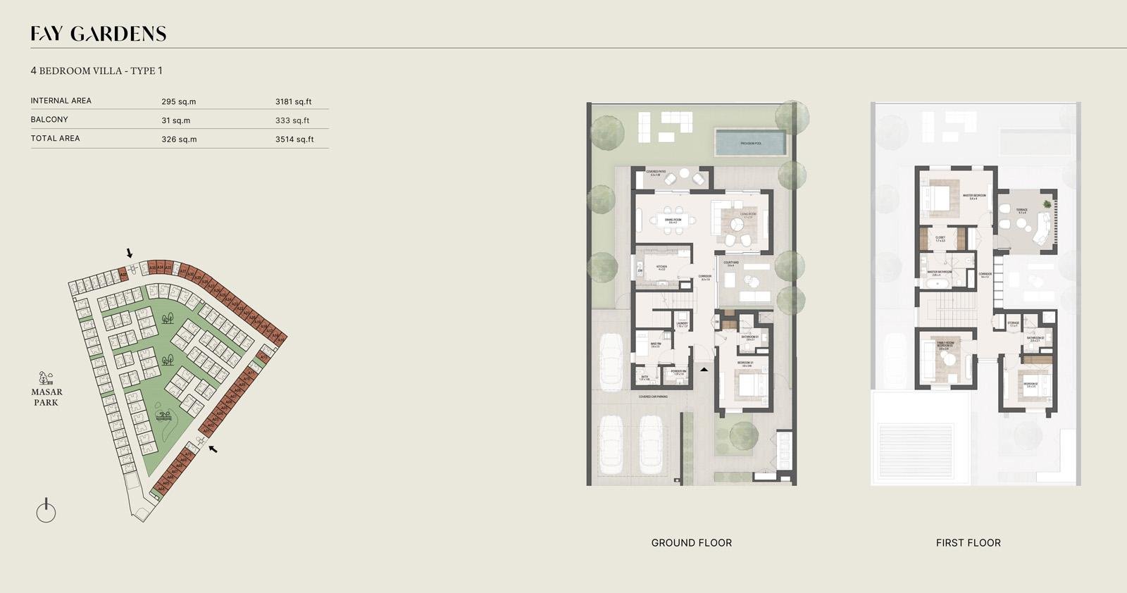 Fay Gardens is Phase 1 of Fay Hills, offering a premium collection of villas set within lush gardens and shaded corridors, combining luxury and sustainability.